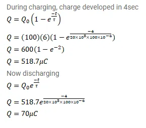 A capacitor of capacitance $100 \mu \mathrm{F}$ is connected across a battery of emf $6.0 \mathrm{~V}$ through a resistance of $20 \mathrm{k} \Omega$ for $4.0 \mathrm{~s}$. The battery is then replaced by a thick wire. What will be the charge on the capacitor $4.0$ s after the battery is disconnected?