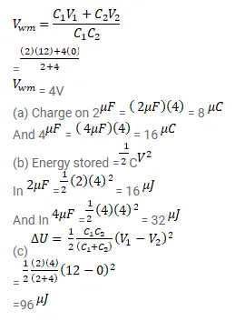 (b) the electrostatic energy stored in each of the two capacitors and
