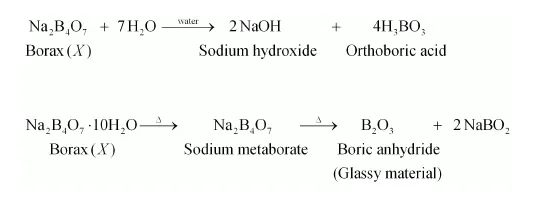 When borax is heated, it loses water and swells to form sodium metaborate. When heating is continued, it solidifies to form a glassy material Y. Hence, Y must be a mixture of sodium metaborate and boric anhydride.