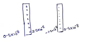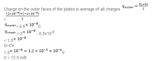 A charge of $+2.0 \times 10^{-8} \mathrm{C}$ is placed on the positive plate and a charge of $-1.0 \times 10^{-8} \mathrm{C}$ on the negative plate of a parallel-plate capacitor of capacitance $1.2 \times 10^{-3} \mu \mathrm{F}$.
