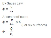 A charge $Q$ is placed at the centre of a cube. Find the flux of the electric field through the six surfaces of the cube.