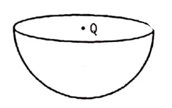 A charge $Q$ is placed at the centre of an imaginary hemispherical surface. Using symmetry arguments and the Gauss's law, find the flux of the electric field due to this charge through the surface of the hemisphere.