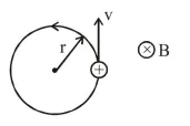 A charged particle going around in a circle can be considered to be a current loop. A particle of mass m carrying charge $q$ is moving in a plane with speed $\mathrm{v}$ under the influence of magnetic field $\overrightarrow{\mathrm{B}}$. The magnetic moment of this moving particle: