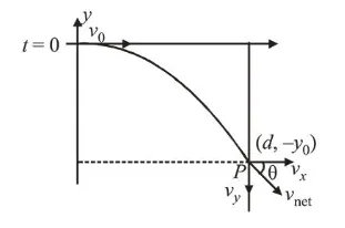 $y=m x+c,\left\{\begin{array}{c}m=\frac{q E d}{m v_{0}^{2}} \\ \left(d,-y_{0}\right)\end{array}\right\}$