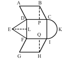 ∴ Total Area = Area of the parallelogram ABCD + Area of the parallelogram FGHI + Area of the triangle DEF + Area of the semicircle CKI + Area of the square