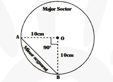 $=78.5 \mathrm{~cm}^{2}-\frac{1}{\mathbf{2}} \times \mathrm{OA} \times \mathrm{OB}\left(\because \angle \mathrm{AOB}=90^{\circ}\right)$