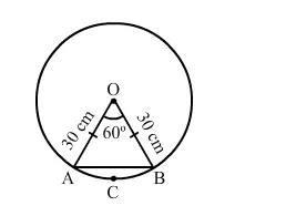 A chord of a circle of radius 30 cm makes an angle of 60° at the centre of the circle. Find the areas of the minor major segments.