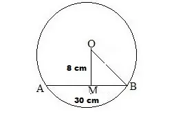 A chord of length 30 cm is drawn at a distance of 8 cm from the centre of a circle. Find out the radius of the circle.