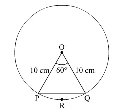 A chord PQ of a circle of radius 10 cm subtends an angle of 60° at the centre of the circle. Find the area of major and minor segments of the circle.
