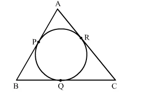 Given, a circle inscribed in triangle $\mathrm{ABC}$, such that the circle touches the sides of the triangle at $\mathrm{P}, \mathrm{Q}, \mathrm{R}$.