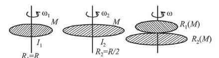 $I_{1} \omega_{1}+I_{2} \omega_{2}=\left(I_{1}+I_{2}\right) \times \omega_{f}$