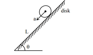 If disk rolls on inclined plane, its acceleration,