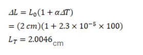 C. What will be the diameter at $100^{\circ} \mathrm{C}$ ? a for aluminium $=2.3^{\times 10^{-5} /{ }^{\circ} \mathrm{C}}$