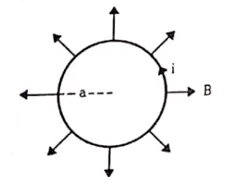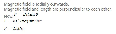 A circular loop of radius a, carrying a current $\mathrm{l}$, is placed in a two-dimensional magnetic field. The center of the loop coincides with the center of the field. The strength of the magnetic field at the periphery of the loop is B. Find the magnetic force on the wire.