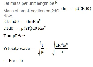 A circular loop of string rotates about its axis on a frictionless horizontal plane at a uniform rate so that the tangential speed of any particle of the string is $\mathrm{U}$. If a small transverse disturbance is produced at a point of the loop, with what speed (relative to the string) will this disturbance travel on the string?
