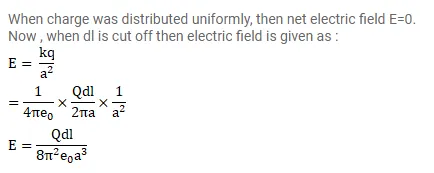 A circular wire-loop of radius a carries a total charge $Q$ distributed uniformly over its length. A small length dL of the wire is cut off. Find the electric field at the centre due to the remaining wire.