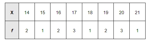A class has 15 students whose ages are 14, 17, 15, 14, 21, 17, 19, 20, 16, 18, 20, 17, 16, 19 and 20 years