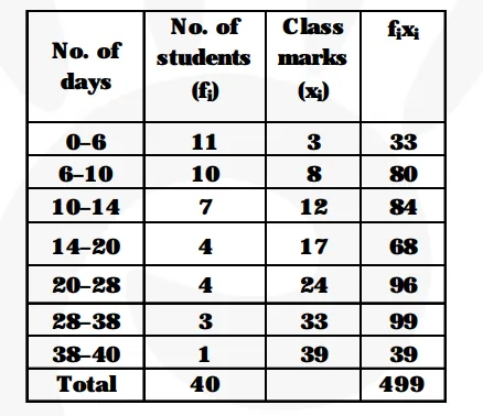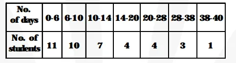 A class teacher has the following absentee record of 40 students of a class for the whole term. Find the mean number of days a student was absent.
