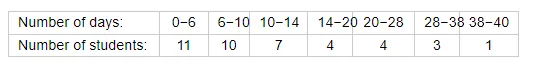 A class teacher has the following absentee record of 40 students of a class for the whole term. Find the mean number of days a student was absent.