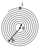 $\mathrm{B}=\frac{\mathrm{N} \mu_{0} \mathrm{i}}{2(\mathrm{~b}-\mathrm{a})} \ell \mathrm{n}\left(\frac{\mathrm{b}}{\mathrm{a}}\right)$