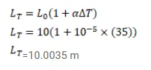 A concrete slab has a length of $10 \mathrm{~m}$ on a winter night when the temperature is $0^{\circ} \mathrm{C}$. Find the length of the slab on a summer day when the temperature is $35^{\circ}$. The co-efficient of linear expansion of concrete is $1.0 x^{10^{-5}} /{ }^{\circ} \mathrm{C}$