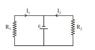 The correct statement about the directions of induced currents $I_{1}$ and $I_{2}$ flowing through $R_{1}$ and $\mathrm{R}_{2}$ respectively is :