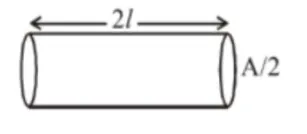 Resistance $=\frac{\rho(2 l)}{(\mathrm{A} / 2)}=\frac{4 \rho l}{\mathrm{~A}}$