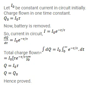 A constant current exists in an inductor-coil connected to a battery. The coil is short-circuited and the battery is removed. Show that the charge flown through the coil after the short-circuiting is the same as that which flows in one time constant before the short-circuiting.