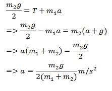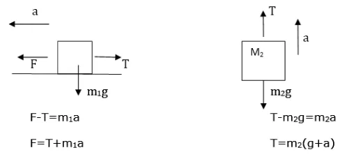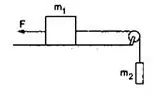 Question: A constant force $\mathrm{F}=\mathrm{m}_{2} \mathrm{~g} / 2$ is applied on the block of mass $\mathrm{m}$, as shown in figure. The string and the pulley are light and the surface of the table is smooth. Find the acceleration of $m_{1}$.