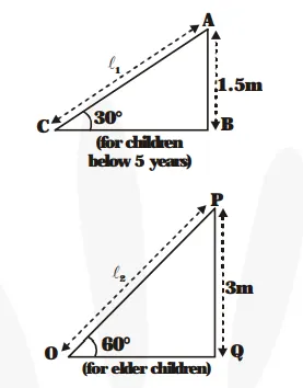 In figure, $\ell_{1}$ is the length of the slide made for children below the age of 5 years and $\ell_{2}$ is the length of the slide made for elder children.