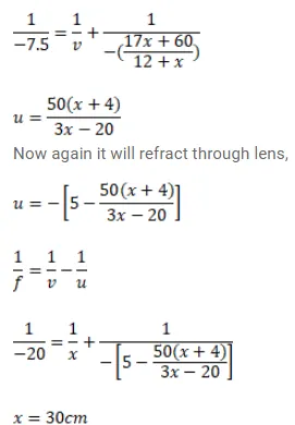 A converging lens of focal length $12 \mathrm{~cm}$ and a diverging mirror of focal length $7.5 \mathrm{~cm}$ are placed $5 \mathrm{~cm}$ apart with their principal axis coinciding. Where should an object be placed so that its image falls on itself?