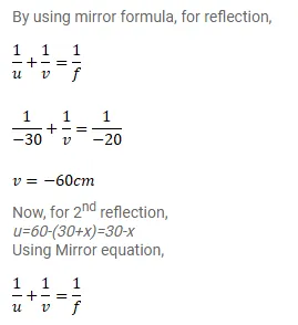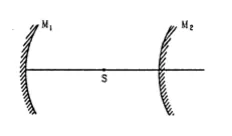 A converging mirror $\mathrm{M}_{1}$, a point source $\mathrm{S}$ and a diverging mirror $\mathrm{M}_{2}$ are arranged as shown in figure The source is placed at a distance of $30 \mathrm{~cm}$ from $\mathrm{M}_{1}$. The focal length of each of the mirror is $20 \mathrm{~cm}$. Consider only the images formed by a maximum of two reflections. It is found that one image is formed on the source itself. (a) Find the distance between the two mirrors. (b) Find the location of the images formed by the single reflection from $\mathrm{M}_{2}$.