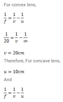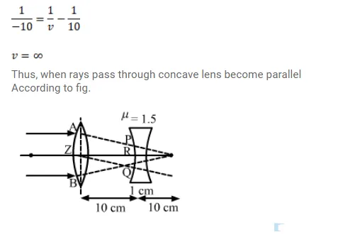 A convex lens of focal length $20 \mathrm{~cm}$ and a concave lens of focal length $10 \mathrm{~cm}$ are placed $10 \mathrm{~cm}$ apart with their principal axis coinciding. A beam of light travelling parallel to the principal axis and having a beam diameter $5 \mathrm{~mm}$, is incident on the combination. Show that the emergent beam is parallel to the incident one. Find the beam diameter of the emergent beam.
