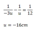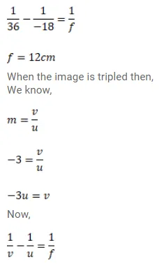 A convex lens produces a double size real image when an object is placed at a distance of $18 \mathrm{~cm}$ from it. Where should the object be placed to produce a triple size real image?