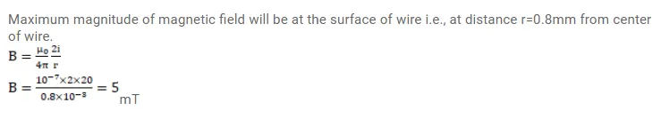 A copper wire of diameter 1.6mm carries a current of 20A.