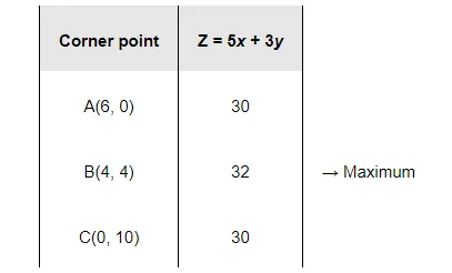 The maximum value of Z is 32 at (4, 4).