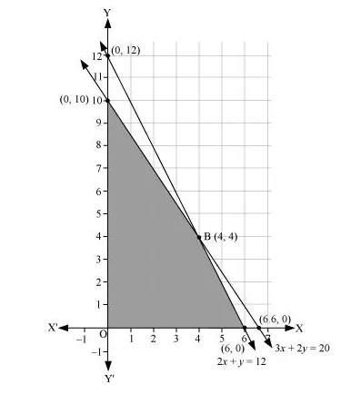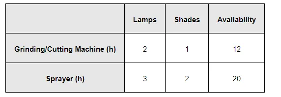 A cottage industry manufactures pedestal lamps and wooden shades, each requiring the use of a grinding/cutting machine and a sprayer. It takes 2 hours on grinding/cutting machine and 3 hours on the sprayer to manufacture a pedestal lamp. It takes 1 hour on the grinding/cutting machine and 2 hours on the sprayer to manufacture a shade. On any day, the sprayer is available for at the most 20 hours and the grinding/cutting machine for at the most 12 hours. The profit from the sale of a lamp is Rs 5 and that from a shade is Rs 3. Assuming that the manufacturer can sell all the lamps and shades that he produces, how should he schedule his daily production in order to maximize his profit?