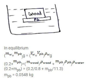 Specific gravity of wood is $0.8$ and that of lead is $11.3$.