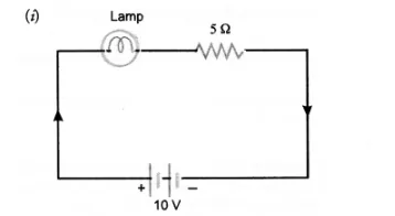 A current of 1 ampere flows in a series circuit containing an electric lamp and a conductor of 5Ω when connected to a 10V battery. Calculate the