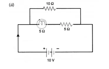 Now if a resistance of 10Ω is connected in parallel with this series combination, what change (if any) in current flowing through 5Ω condcutor and