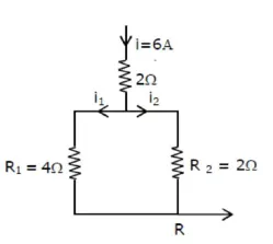 The current $\mathrm{i}_{1}=\left(\frac{\mathrm{R}_{2}}{\mathrm{R}_{1}+\mathrm{R}_{2}}\right)^{\mathrm{i}}$