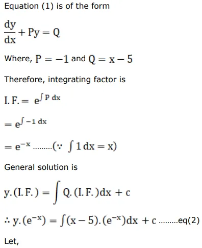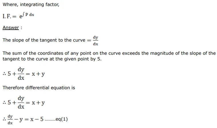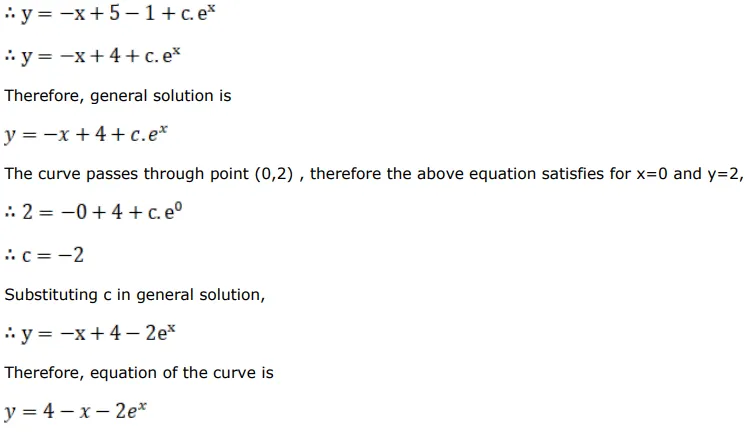 A curve passes through the point $(0,2)$ and the sum of the coordinates of any point on the curve exceeds the magnitude of the slope of the tangent to the curve at that point by 5 . Find the equation of the curve.