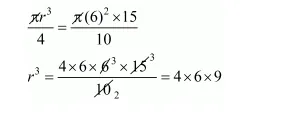 Amount of ice-cream distributed to 10 children $=\frac{\pi \times(6)^{2} \times 15}{10}$