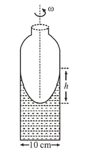 $\Rightarrow \frac{\omega^{2} R^{2}}{2}=g h$\ $($ Given $R=5 \mathrm{~cm})$