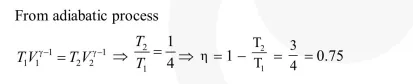 A diatomic ideal gas is used in a carnot engine as the working substance. If during the adiabatic expansion part of the cycle the volume of the gas increases from $\mathrm{V}$ to $32 \mathrm{~V}$, the efficiency of the engine is :-