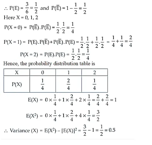A die is tossed twice. A ‘success’ is getting an even number on a toss. Find the variance of the number of successes.
