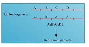 If the genes are not linked, then the diploid organism will produce 16 different gametes. However, if the genes are linked, the gametes will reduce their number as the genes might be linked and the linked genes will be inherited together during the process of meiosis.