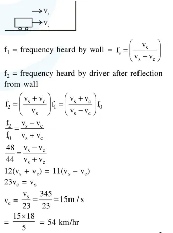 A driver in a car, approaching a vertical wall notices that the frequency of his car horn, has changed from $440 \mathrm{~Hz}$ to $480 \mathrm{~Hz}$, when it gets reflected from the wall. If the speed of sound in air is $345 \mathrm{~m} / \mathrm{s}$, then the speed of the car is