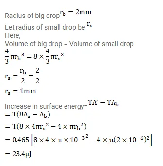 A drop of mercury of radius $2 \mathrm{~mm}$ is split into 8 identical droplets. Find the increase in surface energy. Surface tension of mercury $=0.465 \mathrm{~J} / \mathrm{m}^{2}$.