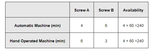 A factory manufactures two types of screws, A and B. Each type of screw requires the use of two machines, an automatic and a hand operated. It takes 4 minutes on the automatic and 6 minutes on hand operated machines to manufacture a package of screws A, while it takes 6 minutes on automatic and 3 minutes on the hand operated machines to manufacture a package of screws B. Each machine is available for at the most 4 hours on any day. The manufacturer can sell a package of screws A at a profit of Rs 7 and screws B at a profit of Rs10. Assuming that he can sell all the screws he manufactures, how many packages of each type should the factory owner produce in a day in order to maximize his profit? Determine the maximum profit.